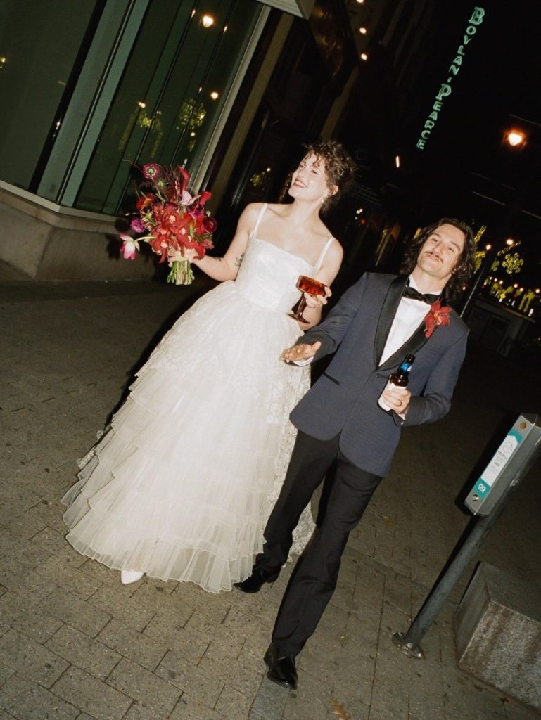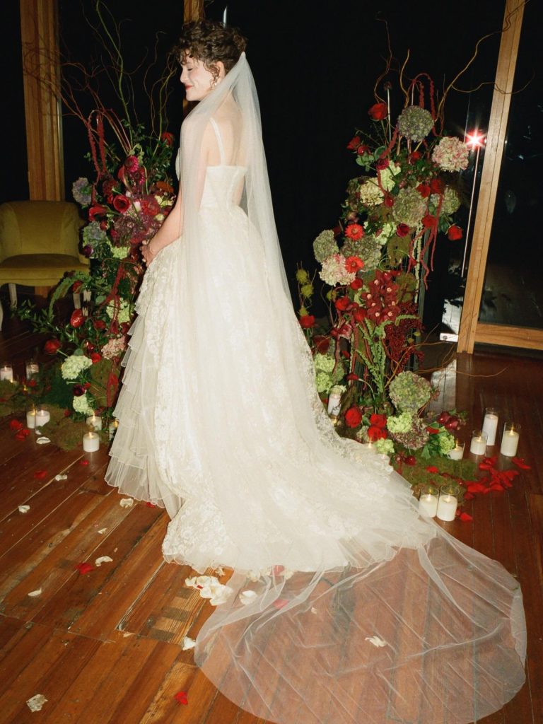 A rich color palette of deep reds and lush greens set the tone for the day, bringing an elevated yet playful energy to the design. The florals added texture and romance throughout the space, striking that perfect balance between elegance and whimsy. Paired with the soft, nostalgic feel of film photography, every moment was captured with a sense of warmth and authenticity that digital simply can’t replicate.