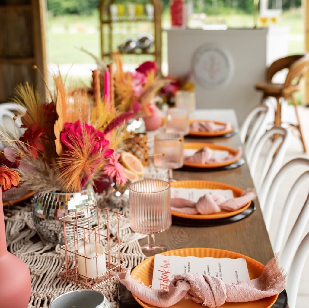 If your Pinterest board includes peacock chairs, rattan everything, or one-of-a-kind table settings, you’ll love Carried Away Rentals. This Raleigh-based rental company is a treasure trove of vintage furniture and curated décor, offering pieces that elevate any ceremony, sweetheart table, or lounge area.