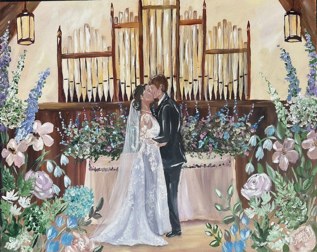 For couples looking to capture their wedding day in a truly unique way, Wildflower Artistry offers live wedding paintings that unfold in real time. As guests watch each brushstroke come together, your most meaningful moments are transformed into a timeless piece of art you can take home at the end of the night.