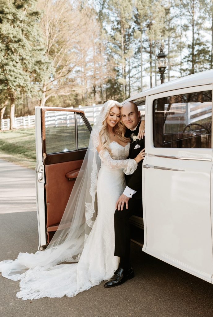 For a timeless touch, the couple incorporated a Rolls-Royce Princess from Carolina Classic Car Rentals into their day, using it as a stunning backdrop for portraits. The vintage car added a sense of classic romance and sophistication, creating moments that felt both editorial and effortlessly refined.