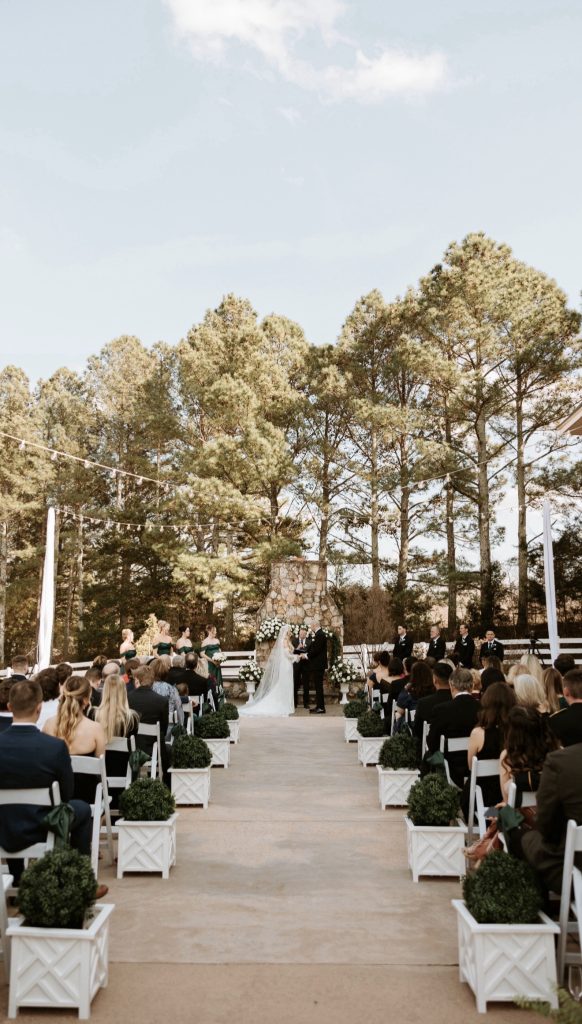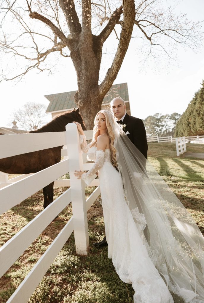 Set against the backdrop of an outdoor ceremony, their day unfolded with a sense of ease and intention. Just as they began exchanging vows, the wind picked up, and the sound of the venue’s horses filled the air, creating a moment that felt almost cinematic. It was unexpected and completely perfect, an atmosphere that made their ceremony feel even more meaningful and uniquely theirs.