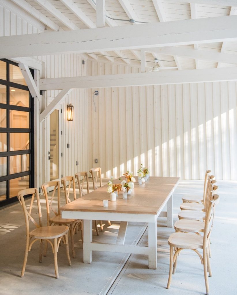 With soaring white walls, exposed beams, and oversized windows that flood the space with natural light, the venue is a dream canvas for both minimalists and maximalists alike. Couples enjoy access to indoor and outdoor ceremony options, a sleek reception hall, spacious getting-ready suites, and thoughtful amenities that prioritize both guest comfort and design flexibility.