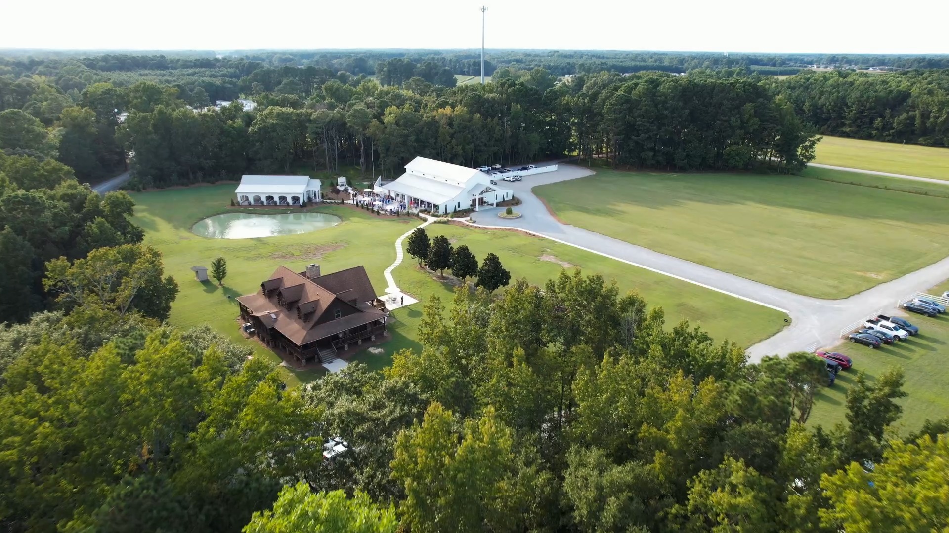 The Hartwood Weddings & Events is a premier wedding venue in Selma, North Carolina, where Southern elegance meets nature’s timeless beauty on a secluded 35-acre estate. With lush greenery, winding creeks, and century-old oak trees, the venue provides a breathtaking backdrop for ceremonies and receptions that feel both relaxed and refined. Couples love the thoughtful design of the open-air chapel, spacious reception hall, cozy cocktail patio, and luxurious bridal and groom suites, all curated to bring your dream wedding day to life with ease and style.